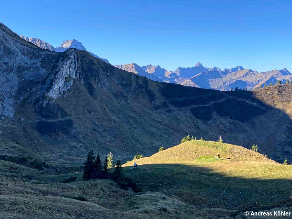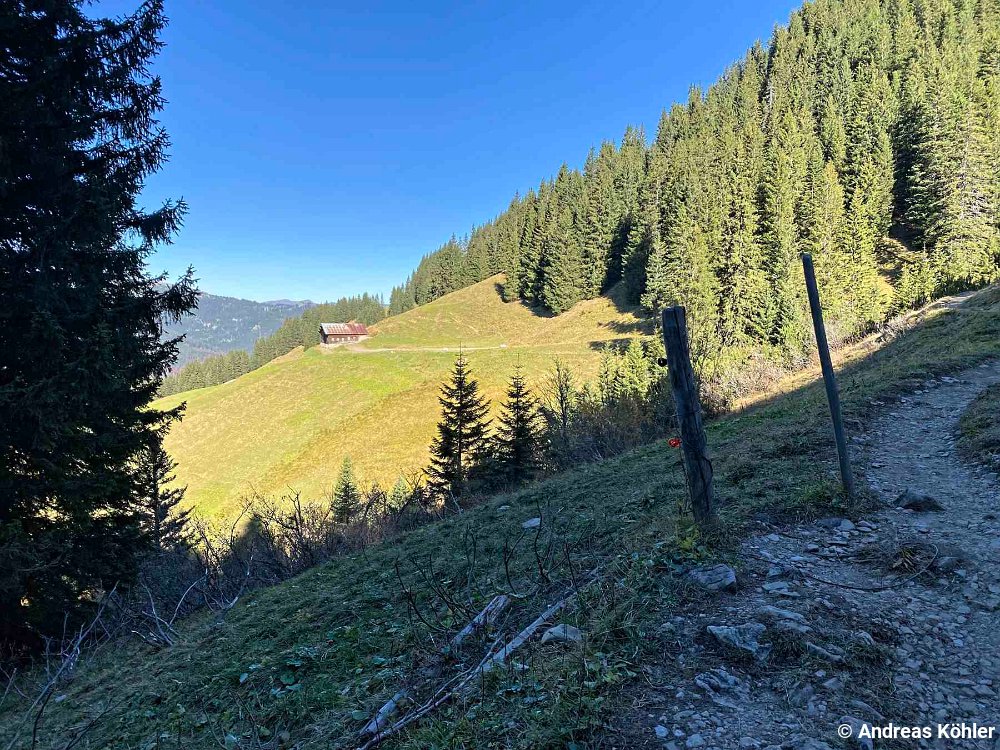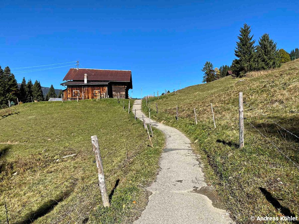 Fotostandorte Blick zur Kuhgehrenspitze Bergstation Kanzelwand Weg Kanzelwandflanke Weg ab Kuhrgehrenspitze Blick ins Kleinwalsertal Alpe Kuhgehren Außerkuhgehrenalpe Außerkuhgehrenalpe Weg über Wiese Weg nach Riezlern
